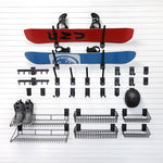 This bundle includes a carefully curated selection of slat wall hooks, baskets, and shelves, perfect for creating a snowboard and ski rack that can hold everything from snowboards and skis to winter jackets and gloves. Its heavy-duty snowboard wall mount design keeps your boards securely fastened to the wall while maximizing your garage space. With snowboard hangers wall hooks, you can easily create a DIY snowboard rack that adds a professional touch to your winter gear storage.