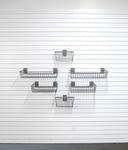 Fits StoreWall, Milwaukee slatwall, HandiWall, Diamond Life, GarageTek, New Age, and standard universal 3" on center slatwall systems only.