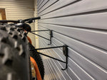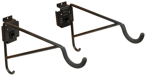HandiWALL Horizontal Bike Hooks with Lock. Set of two rubberized hooks that can be staggered and adjusted on the slatwall to hang a variety of bike sizes.
