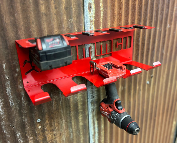 Milwaukee M18 4 Tool Holder pictured with HandiWALL Locking Accessory Clips