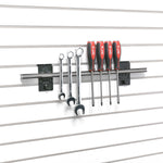 Effortlessly install the 24″ Magnetic Bar on your garage slatwall, and watch as your workspace transforms into an organized and clutter-free haven. Experience the ease and convenience of having your essential tools neatly arranged with the 24″ Magnetic Bar from MKE Slatwall.