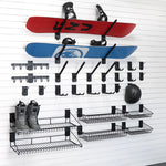 This bundle includes a carefully curated selection of slat wall hooks, baskets, and shelves, perfect for creating a snowboard and ski rack that can hold everything from snowboards and skis to winter jackets and gloves. Its heavy-duty snowboard wall mount design keeps your boards securely fastened to the wall while maximizing your garage space. With snowboard hangers wall hooks, you can easily create a DIY snowboard rack that adds a professional touch to your winter gear storage.