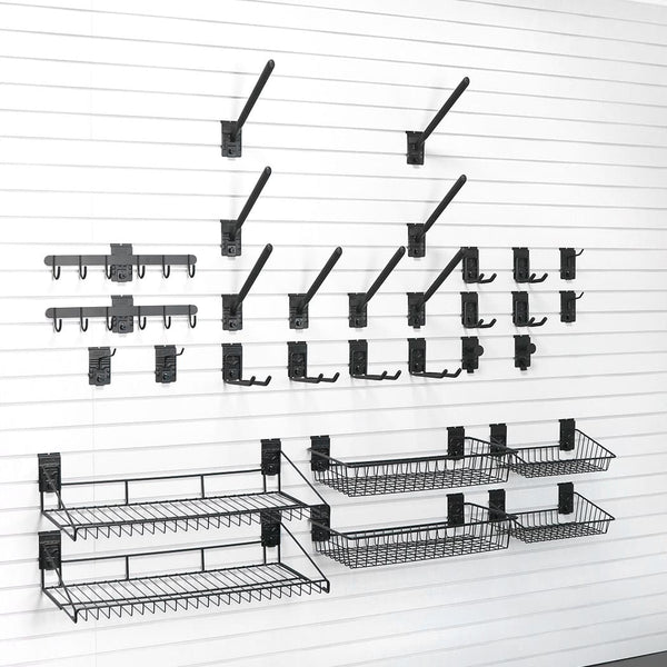 Take your garage organization to the next level with Milwaukee Slatwall’s Extra Large Snowboard Bundle, thoughtfully designed to provide ultimate storage for all your winter sports equipment. Whether you need to store snowboards, boots, jackets, gloves, or other winter essentials, this 30-accessory bundle has everything you need to keep your gear organized, accessible, and protected.