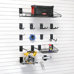 The Medium Tool Bundle is a versatile tool storage system designed for power tools, hand tools, and essential garage accessories. This all-in-one garage wall organizer features a variety of hooks, shelves, and brackets to keep your workspace neat and your tools easily accessible.