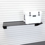 The Metal Shelf is a durable and versatile storage solution designed for slatwall mounting, offering strong, stable support for heavy and bulky items. Whether you need long-term overhead storage or a workstation for tools and DIY projects, this heavy-duty shelf maximizes your garage organization and workspace efficiency.