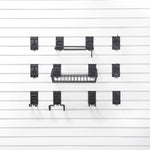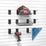 Get started with garage organization using the Small Tool Bundle from Milwaukee Slatwall. Perfectly curated for compact and efficient tool storage, this bundle includes 10 versatile accessories, including hooks, baskets, and shelves, designed to keep your tools secure and accessible. The Small Tool Bundle is a versatile garage wall organizer, designed to keep power tools, hand tools, and essential accessories neatly stored. This efficient tool storage system includes a variety of hooks, brackets, and shelves to maximize space and improve accessibility.