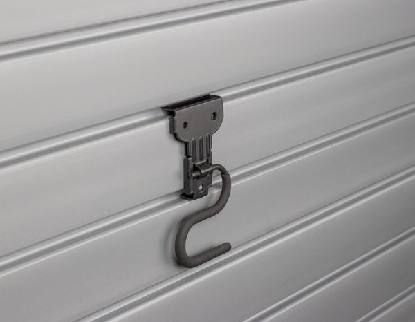HandiWALL S Hook. Multi-function design ideal for brooks, rakes, shovels, poles, or a variety of tools and items.  Features rust resistant powder coated finish with rubber coating for secure grip and protection.