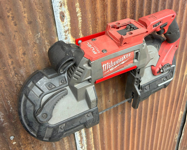 Designed for Milwaukee Tool and Dewalt band saws, the Zimmco portable band saw holder gives you a convenient way to store your band saw. We all know how large and odd shaped they are, so why not put them on a hanger. These are a great way to open up some shelf space and keep the saw easy to grab. This band saw holder would be a great addition to any shop or work station.