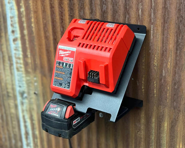 This Milwaukee M18 battery charger mount is an excellent organizational solution for workshops, work trailers, and service trucks. Designed to securely hold two batteries for charging or storage, it ensures you always have fully charged batteries on hand when you need them. The mount's ergonomic design, featuring a dedicated space for the power cord to pass through, enhances both its functionality and aesthetics. This thoughtful design not only creates a clean, streamlined look but also ensures a safe and convenient charging setup.