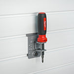 The Square Loop Hook is a must-have item for your garage storage slatwall ststem. Keep screwdrivers and hammers securely off the ground and on your slatwall system.
