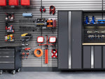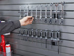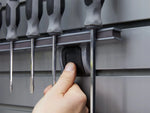 Maximize your slatwall system with NewAge slatwall accessories. Designed for use with NewAge steel and PVC Slatwall systems, and compatible with most 3 in. on-center slatwall systems, the snap-in slatwall accessories are built with steel for extra strength. The powder-coated silver gloss finish looks great in any space and any slatwall. Its locking mechanism prevents items from accidentally coming loose. The Magnetic Tool Bar securely holds metal tools in place with magnets, helping keep the workspace tidy by minimizing clutter and making your often-used hand tools readily available within arm's reach.