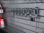 Fits NewAge, HandiWall, StoreWall, MKE Slatwall, Diamond Life, GarageTek, and standard universal 3" on center slatwall systems only.