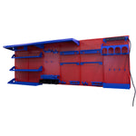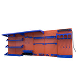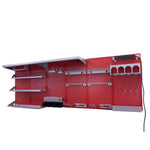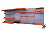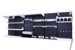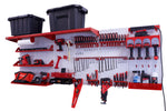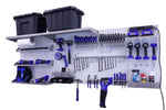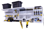 The OmniWall Weekend Warrior Ultimate Tool Kit includes accessories for your hammers, screwdrivers, wrenches, power drills and more! One piece solid construction shelves are part of this awesome kit. Made in the USA, this powder coated metal wall organization system is one of our best selling kits. Spanning 8 feet, this kit is superior in strength and one of the most versatile wall systems on the market.
