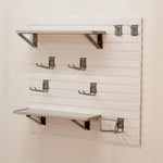 StoreWALL slatwall panels are compatible with StoreWALL, MKE Slatwall, HandiWALL, Diamond Life, GarageTek, New Age, and other standard universal 3” on center slatwall accessories.