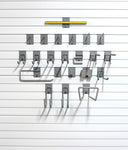 Fits StoreWall, Milwaukee slatwall, HandiWall, Diamond Life, GarageTek, New Age, and standard universal 3" on center slatwall systems only.