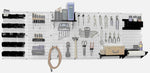 Replace your messy tool chest and easily create the ultimate tool wall storage for your most heavily used tools with Wall Control's Master Workbench Kit. No more wasted time and frustration digging through an unorganized tool box, now you will have your tools on the wall right where you can quickly see and grab them. This Wall Organization System is great for storing wrenches, screwdrivers, pliers, saws, hammers, vice grips, extension cords, wrench sets, tool belts, box end wrenches, ratchet tools, small parts, loose hardware in bins, socket shelf storage, and more. You can also easily attach compatible "Add-On" items such as power strips, magnetic socket holders, wire baskets, phone holders, magnetic led light bars and socket sets, air tool organizers, glove dispensers, wire hooks, magnetic tool pads, and pretty much anything you can attach with traditional round pegboard pegs as well as all magnetic tool organizers making this system the ultimate omni tool storage solution with maximum value and versatility.