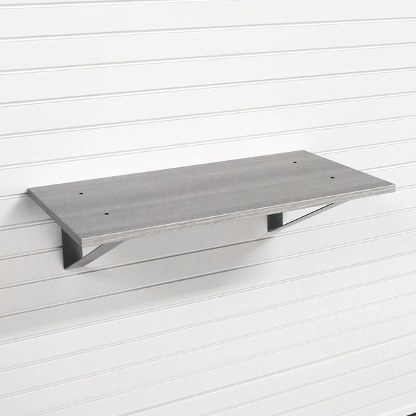 The Laminate Shelf offers a durable and stylish storage solution for your garage, mudroom, laundry room, or tool room. Designed for seamless integration with slatwall panels, this premium laminated shelf provides sturdy and versatile storage for a wide range of items.