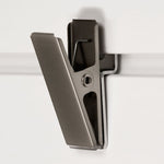 Brushed Chrome Clip. Padded clip inserts add protection and grip strength. Twist Fix mount will also fit conventional slatwall.
