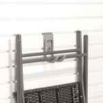 Fits StoreWall, Milwaukee slatwall, HandiWall, Diamond Life, GarageTek, New Age, and standard universal 3" on center slatwall systems only.