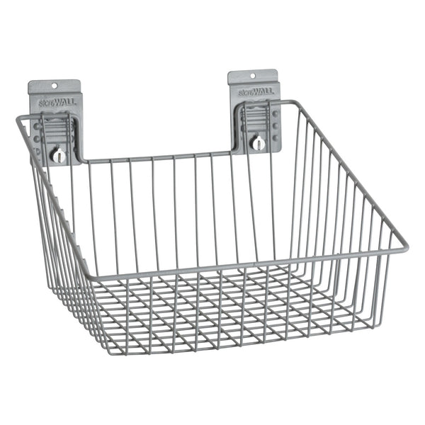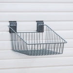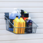 This angled basket is an all-purpose basket that’s useful for many things and easily accessible. Garage owners can use it for various purposes, from holding large paint cans and automotive supplies to displaying albums and magazines.