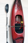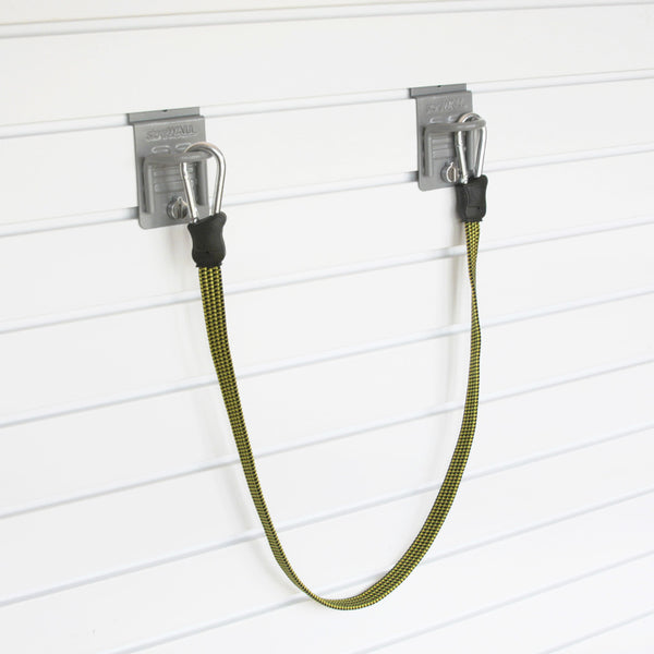 Large Bungee Hook Set: Two closed loop hooks and our bungee cord can store large objects vertically on the wall, freeing up valuable storage space. Can be used to store items such as a rowboat, wheelbarrow and more! The Large Bungee measures 33″ without clips and extends to 96″ clip to clip.