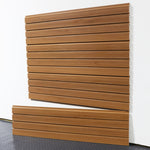 An extremely strong, versatile and beautiful garage storage slatwall for very demanding applications. These slatwall panels are significantly stronger and more substantial than conventional slatwall panels, waterproof, recyclable, and easily cleaned. Heavy Duty slatwall panels have a patented profile, designed to accept the exclusive InstallStrip (sold separately) for easy installation and a beautiful fastener free appearance. Heavy Duty panels are molded and solid core, so the color and finish goes throughout the panel. StoreWALL HeavyDuty Slatwall Panels are sold in 4' lengths in cartons of 4 panels and 8′ lengths in cartons of 4 panels. Slatwall panels are available in your choice of 7 designer colors and wood grains. Each panel is 15" in height.