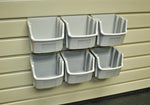 Organize small parts and hardware. Bins attach securely and remove instantly.