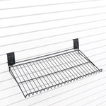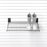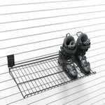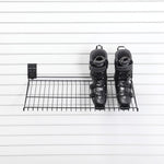 The Angle Shelf is the ideal solution for storing footwear while allowing wet shoes and boots to drain properly. Designed for slatwall systems, this angled wire shelf keeps footwear elevated, dry, and organized in your garage, mudroom, or entryway. Crafted with utmost thoughtfulness, the Angle Shelf is designed to accommodate your shoes and boots effortlessly. Its generous width allows it to hold up to three pairs of adult boots at once, making it an ideal addition to any garage storage system.