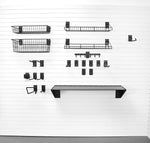 Each accessory in this bundle is engineered with our exclusive double backplate lock, ensuring that your hooks and shelves stay securely fastened to the slatwall. A simple push-up of the foot lock and a twist of the hex bolt anchors the accessories firmly to your panels, offering unmatched stability for even your heaviest tools. Repositioning is a breeze, allowing you to customize your setup to fit your unique storage needs.