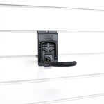 Transform your garage with Milwaukee Slatwall’s top-notch Slatwall hooks and accessories. With our exclusive double backplate lock, your garage hooks will stay securely fastened to the slatwall, offering a durable storage solution for all your tools. Enjoy the flexibility of easy lock-in and lock-out repositioning options.