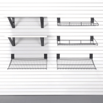 Embarking on the journey of transforming your garage into an organized haven can feel like a daunting task. The multitude of choices in garage accessories often leaves you wondering where to start. That’s why we’ve meticulously crafted the Milwaukee Slatwall Large Shelf Bundle—an exclusive selection of 6 top-tier garage shelves, purposefully designed to simplify your garage organization. Expertly curated by our team, this bundle strikes the perfect balance between quantity and versatility. Tailored for those seeking comprehensive storage solutions, the Large Shelf Bundle seamlessly merges functionality with a touch of elegance.