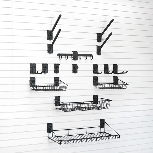 Organize your garage like a pro with Milwaukee Slatwall’s Large Snowboard Bundle, featuring 16 essential accessories designed to maximize your winter sports storage. This all-in-one solution offers the perfect combination of slatwall hooks, baskets, and shelves to neatly store and display your snowboards, skis, boots, jackets, gloves, and more. Whether you’re a snowboard enthusiast or managing a family’s winter sports gear, this bundle simplifies your garage organization.