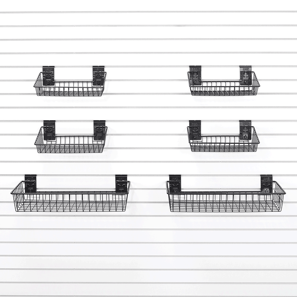 Optimize your garage and closet organization with the Medium Basket Bundle, a durable slatwall storage solution designed for multi-purpose storage. These wall-mounted storage baskets provide the perfect balance of space efficiency and accessibility, making them ideal for garage organization baskets, closet storage baskets, and pantry shelving solutions. Crafted with heavy-duty slatwall baskets, this bundle ensures a clutter-free and well-organized space for a variety of everyday items.