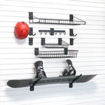 Our medium snowboard bundle combines durable slat wall hooks, sturdy baskets, and functional shelves, ensuring all your gear is secure, easily accessible, and neatly stored. From snowboard holders and snowboard racks to hooks for boots and clothing, this bundle is the ultimate organization system for your garage or ski room.