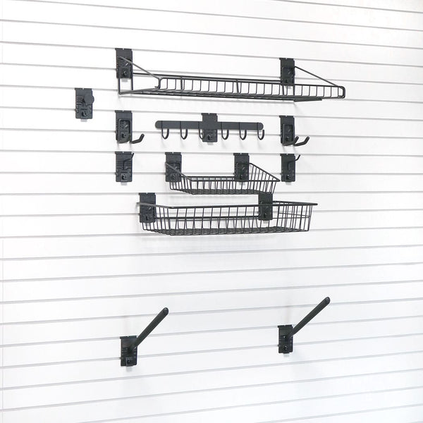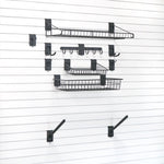 Our slatwall accessories are universally compatible with most 3-inch on-center slatwall panels, including StoreWALL and other top brands. Effortlessly incorporate this bundle into your existing ski rack garage setup or begin building a custom storage system tailored to your needs.