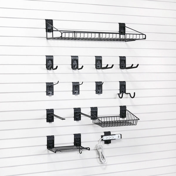 Included in Medium Tool Bundle (14 slatwall accessories):
