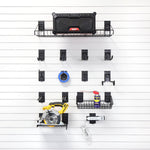 The Medium Tool Bundle is a versatile tool storage system designed for power tools, hand tools, and essential garage accessories. This all-in-one garage wall organizer features a variety of hooks, shelves, and brackets to keep your workspace neat and your tools easily accessible.