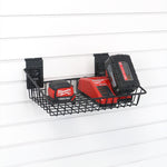 The perfect addition to your garage organization system. This slatwall basket is designed to provide a seamless storage solution for both heavy and smaller items, making it a must-have for any garage space.