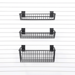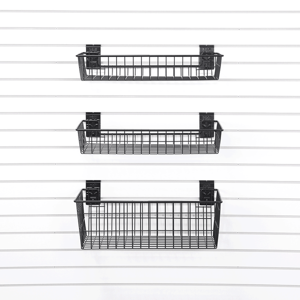 Upgrade your garage and closet organization with the Small Basket Bundle, a wall-mounted storage solution designed for efficient and accessible storage. These heavy-duty slatwall baskets are perfect for garage storage baskets, closet organization, and pantry shelving, ensuring a tidy and clutter-free space. Whether you need floating storage baskets for closets or utility storage baskets for slatwall, this bundle provides reliable and multi-purpose storage.