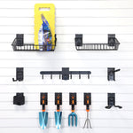 Transform your garage or shed into a well-organized and functional space with Milwaukee Slatwall’s Small Lawn and Garden Tool Bundle. Designed to help you manage garden tools, lawn equipment, and accessories with ease, this bundle includes 11 high-quality slatwall accessories. It’s the perfect combination of slat wall hooks, baskets, and shelves to create a streamlined solution for your garage tool storage needs. The Small Lawn & Garden Bundle is perfect for organizing gardening tools, lawn maintenance equipment, and outdoor essentials while saving space. Designed for compact storage, this slatwall organizer securely holds rakes, shovels, pruning shears, and other lawn care tools in an easily accessible manner.