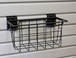 Features metal spring-loaded pin for snapping into slatwall. Unlimited storage uses for fertilizers, car supplies, toys, sports gear, and more. Ventilated basket allows air movement, visibility, and keeps harmful items out of reach.