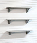 StoreWALL’s 32″ x 12″ Barnwood shelf is made from solid MDF with an exterior protective finish. Made to be heavy duty and to have a very high end look to it. With the versatility of the storeWALL slatwall system it can easily be moved where ever you need extra garage shelf space.