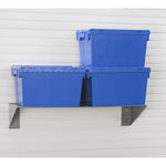 The StoreWALL 48" Metal Shelf, made from solid industrial grade steel, with a steel reinforcement bar on the underside. It will keep all your items safely stored, organized and up and out of the way. Secured with CamLok backplates, and coated with a heavy duty powder finish, this garage shelf will stay put and hold up to years of wear and tear.