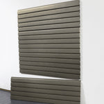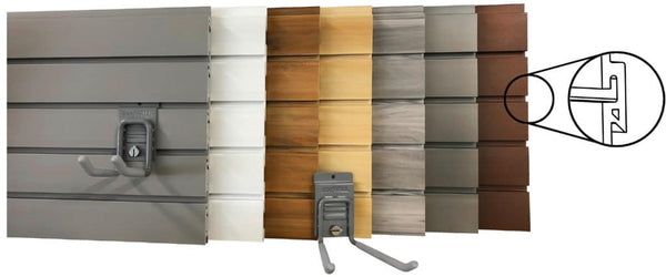 An extremely strong, versatile and beautiful garage storage slatwall for very demanding applications. These slatwall panels are significantly stronger and more substantial than conventional slatwall panels, waterproof, recyclable, and easily cleaned. Heavy Duty slatwall panels have a patented profile, designed to accept the exclusive InstallStrip (sold separately) for easy installation and a beautiful fastener free appearance. Heavy Duty panels are molded and solid core, so the color and finish goes throughout the panel. StoreWALL HeavyDuty Slatwall Panels are sold in 4' lengths in cartons of 4 panels and 8′ lengths in cartons of 4 panels. Slatwall panels are available in your choice of 7 designer colors and wood grains. Each panel is 15" in height.